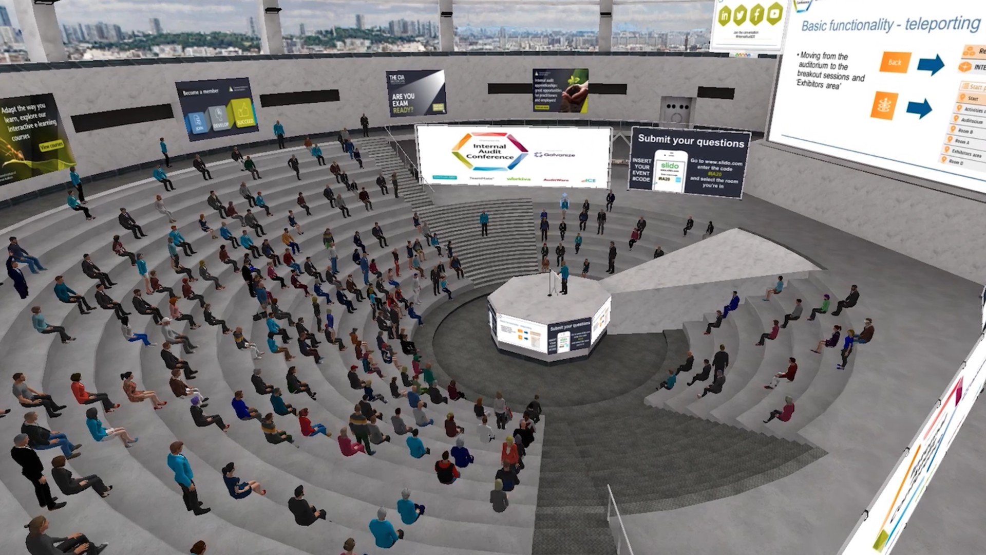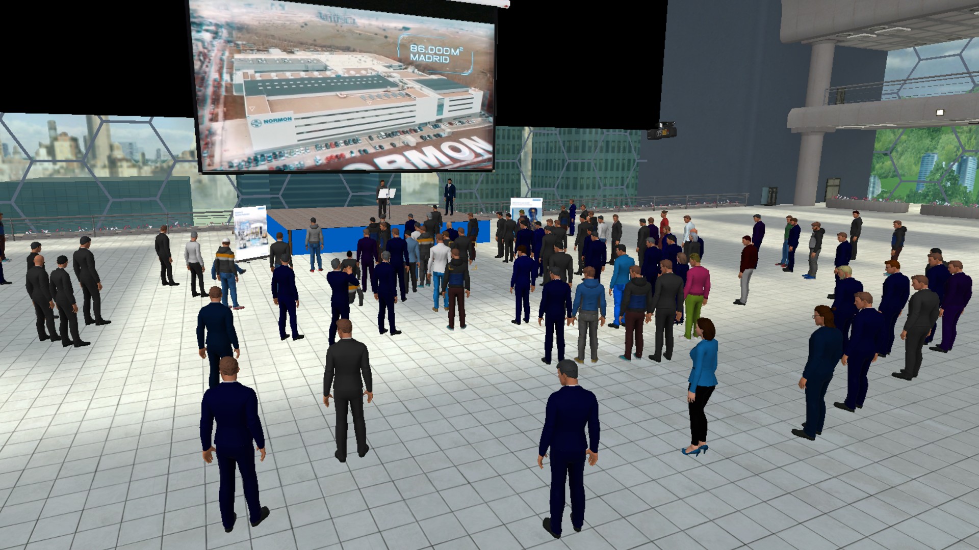 El evento online puede asemejarse a la realidad tanto como el organizador quiera, con decoración realista, branding, expositores de productos, puntos de información, y muchas más opciones. El ambiente 3D permite a los organizadores centrarse en la diversión, creando actividades gamificadas e interactivas para el networking y que permiten que la comunicación sea tan natural como acercarse a alguien y hablar – tal como en la vida real.